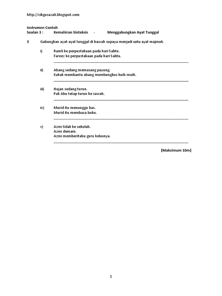 Instrumen Contoh Soalan 3 Gabung Ayat Pdf